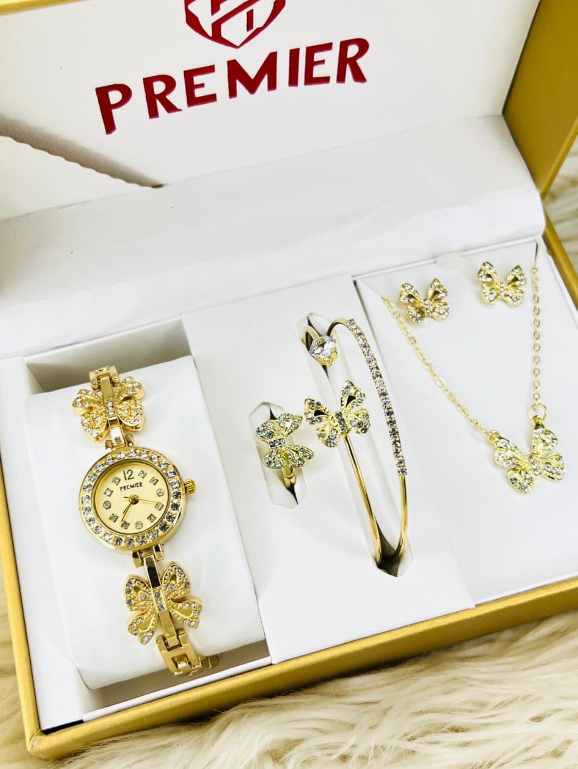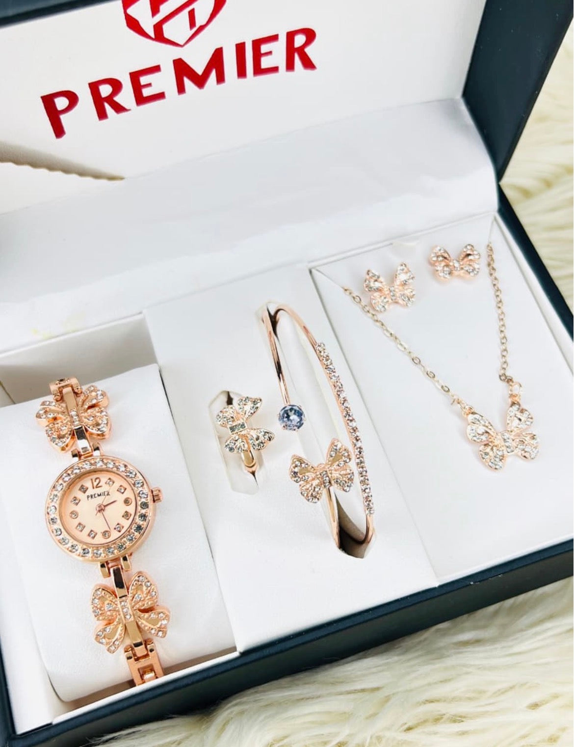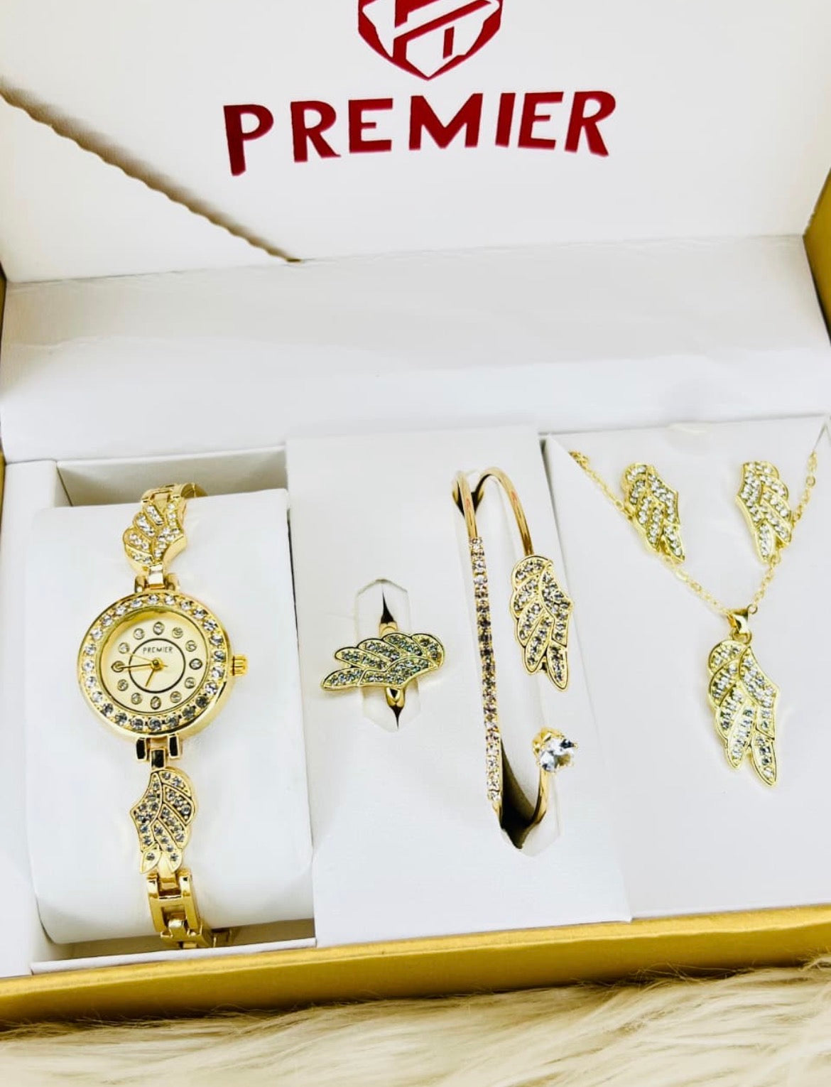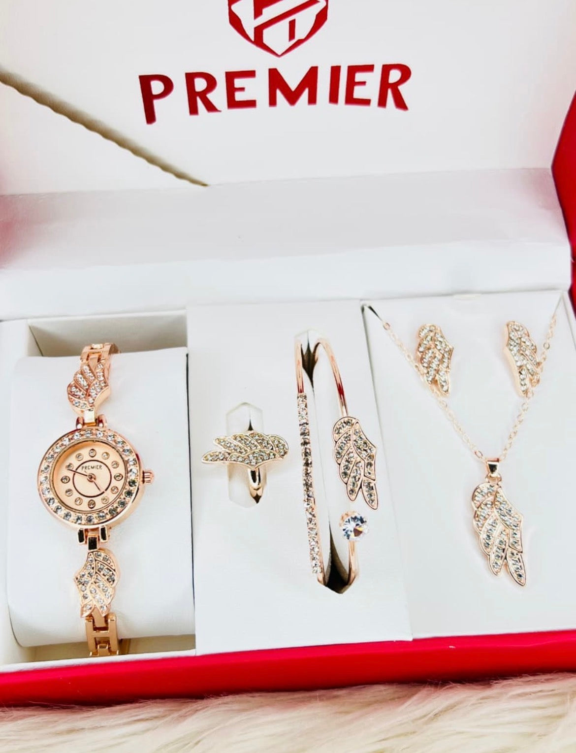 Elevate your style with the Premier Gift Ledis watch, complete with a coordinating necklace and bracelet. This premier set combines practicality and elegance, featuring a watch with precise movement and a beautiful design. Perfect for any occasion, this watch and jewelry set is a must-have for any fashion-forward individual.