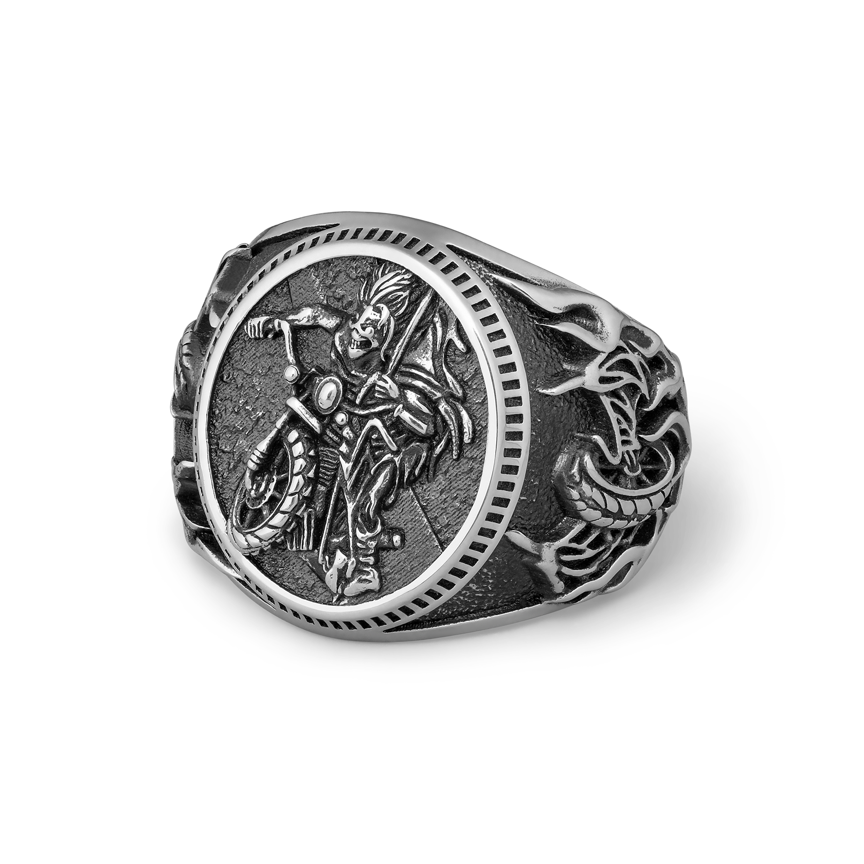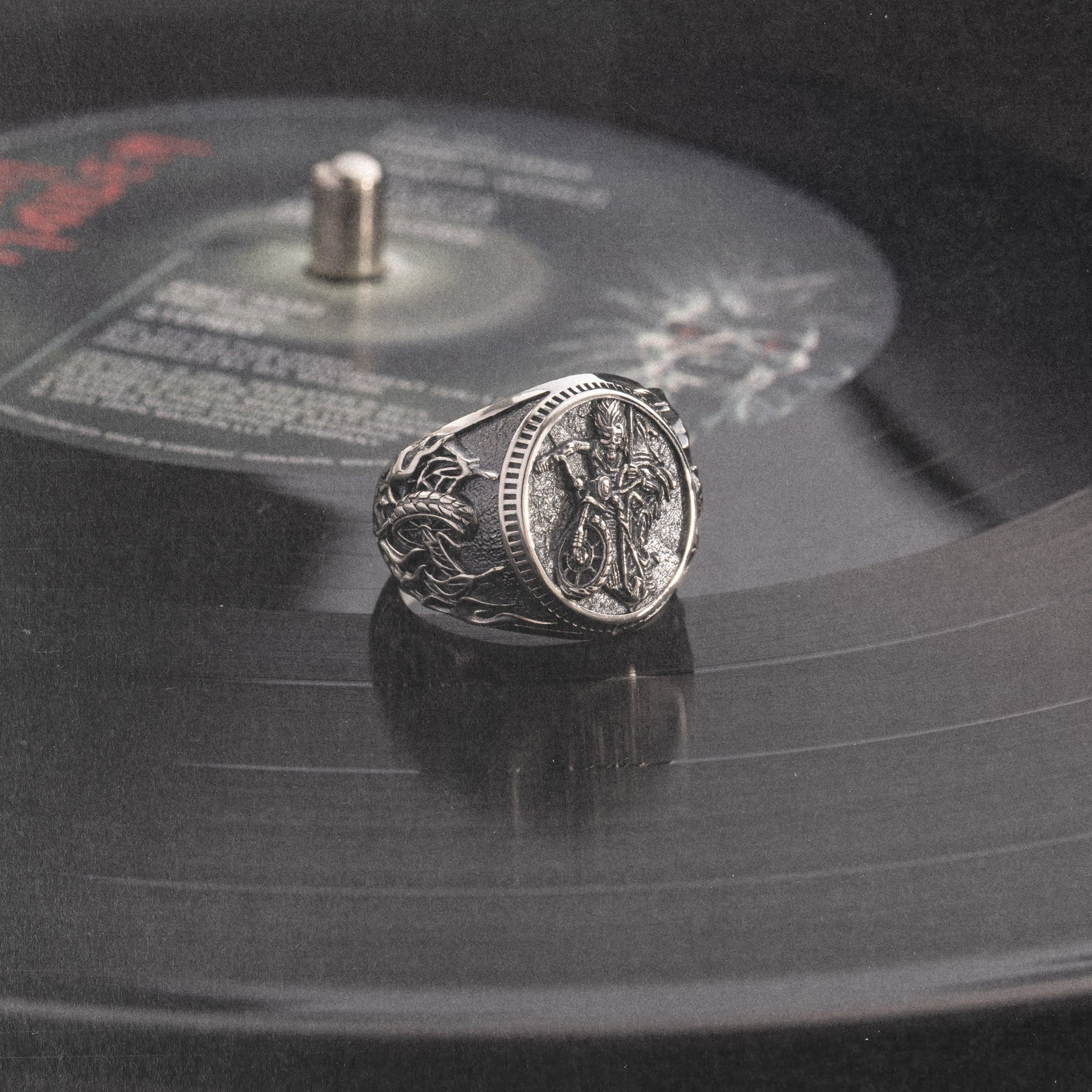 Forged in honour of Iron Maiden’s 50th anniversary, this bold design features the same striking motorcycle-riding Eddie artwork that made its debut as the cover of Maiden England, a now classic live video documenting Maiden’s legendary 1988 Seventh Tour of a Seventh Tour. Carved in sterling silver, this ring is for the ones who trust their gut and ride it to the end - no detours, no second-guessing. You don’t follow signs. You become one.